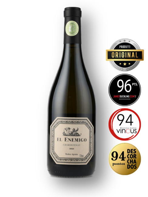 Assinado por Alejandro Vigil - um dos mais talentosos enólogos argentinos da atualidade, este vinho confere uma nova dimensão aos brancos de Mendoza. Elaborado com uvas de Tupungato e Gualtallary, cultivadas a 1500 metros de altitude. O El Enemigo Chardonnay é um branco sério e persistente - um dos mais fantásticos brancos produzidos na Argentina. A safra 2021 mereceu nada menos que 97 pontos de James Suckling que o descreveu como "Realmente maravilhoso!".